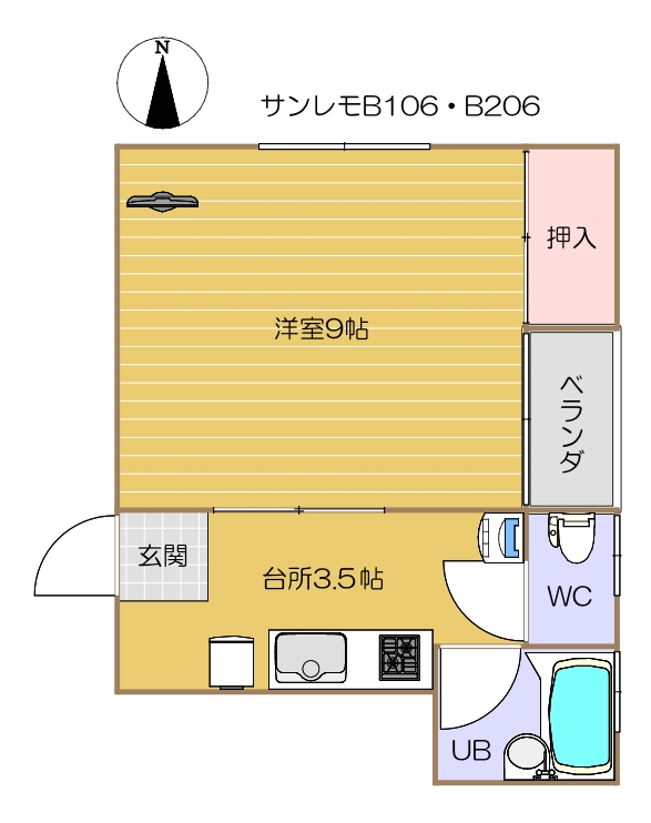 - 全室に押入、B103・B203号室のみクローゼットがあります
