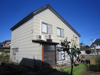 北東方向から撮影、外壁はH10にアルミサイディングで上貼り